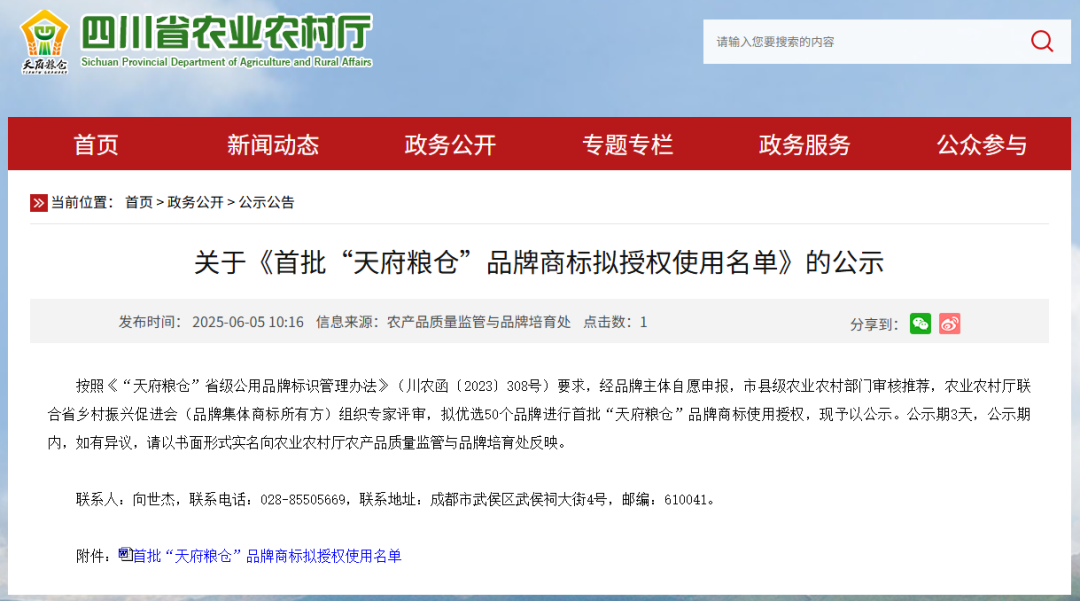 四川省农业农村厅公示了