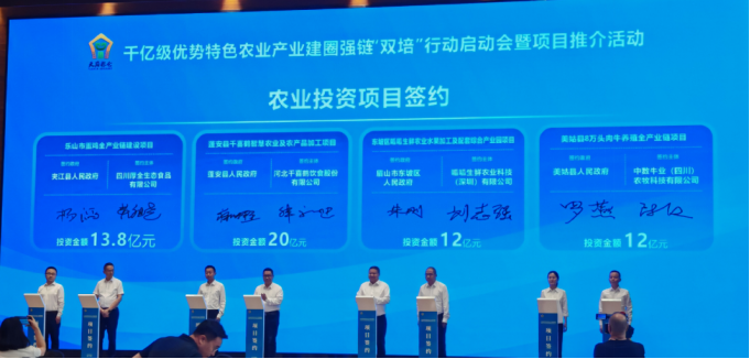 经市农业农村局牵线搭桥、跟踪协调,6月30日,蓬安县人民政府、河北千喜鹤餐饮股份有限公司在四川省千亿级优势特色农业产业建圈强链“双培”行动启动会暨项目推介会成功现场签约,协议投资金额20亿元。蓬安县委书记唐方春,市农业农村局党组书记、局长罗靖,蓬安县委常委、副县长蒋鹏程参加签约活动,并组织项目落地推进座谈会。