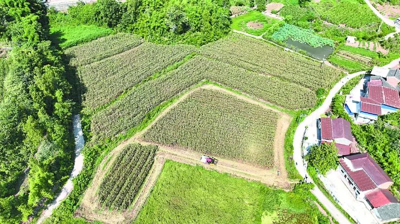 近日,在嘉陵区龙蟠镇高桥坝村,南充市嘉陵区丘粮农业专业合作社的400余亩玉米开始收割。